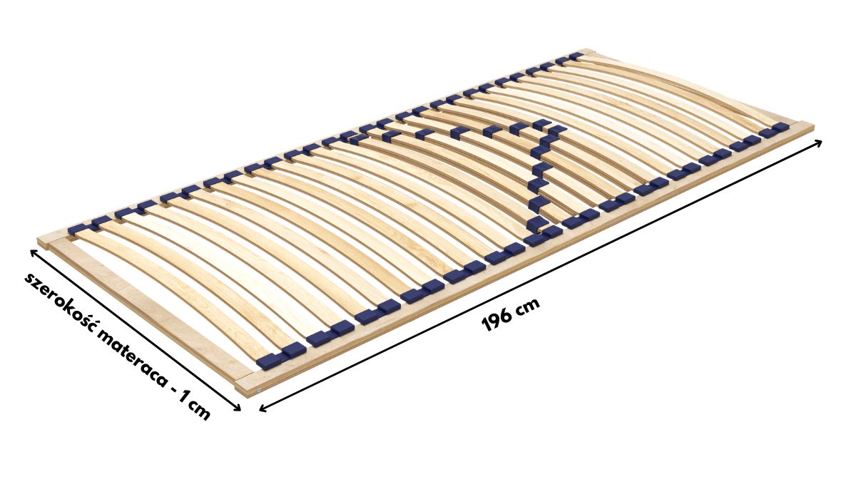 Stelaż TWINPACK oferowany jest w standardowych rozmiarach od 80x200 cm do 180x200 cm. Istnieje również możliwość zamówienia wymiarów nietypowych (np. 87x192 cm czy 210x90 cm). Wszystkie wersje mają rzeczywisty wymiar o 1 cm węższy i 4 cm krótszy. Grubość stelaża to około 3,5 cm.
