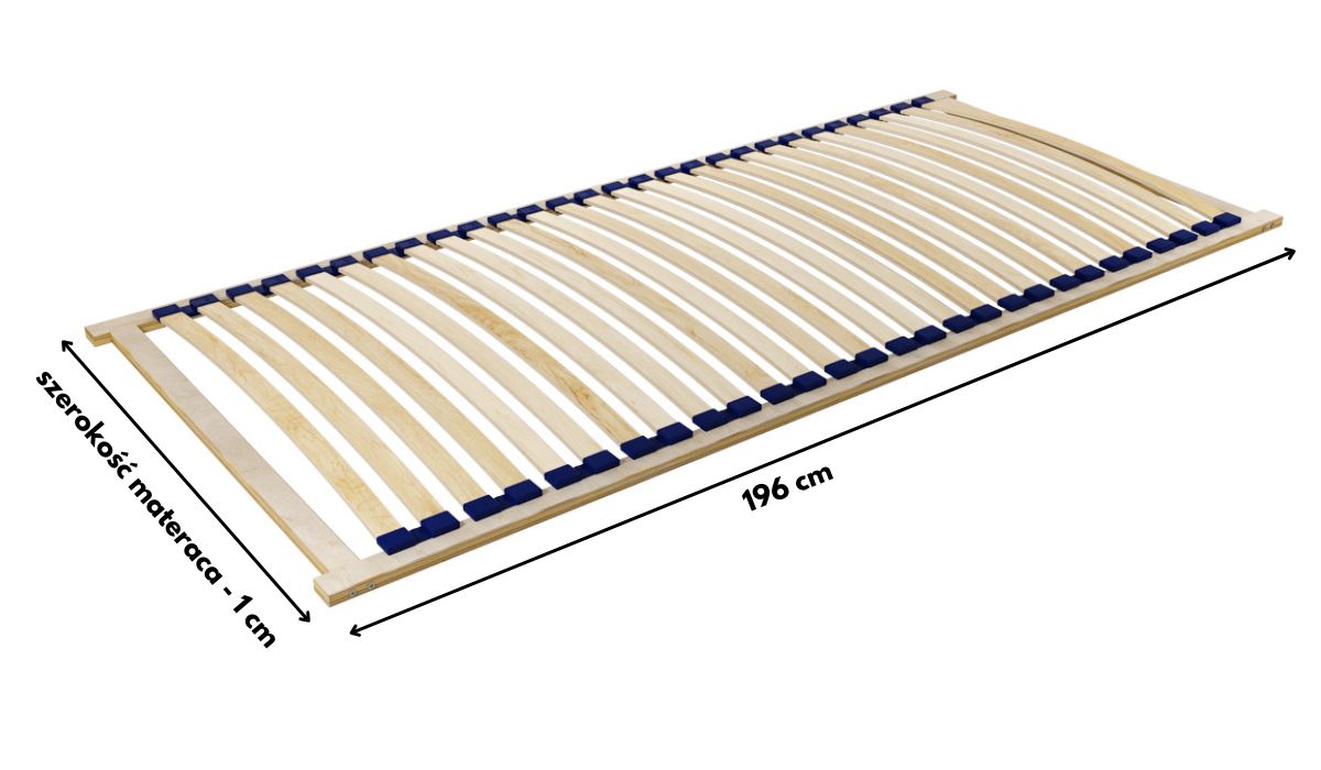 Listwy wykonano z giętej brzozy osadzonej w elastycznych uchwytach, które umożliwiają odpowiednią amortyzację ruchów. Dzięki poziomemu układowi listew materac zyskuje równomierne wsparcie na całej długości.