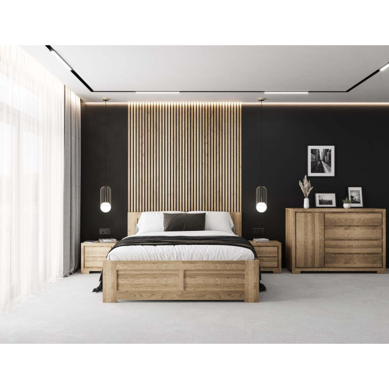 Łóżko LK212 to propozycja dla tych, którzy cenią sobie prostotę formy, solidność wykonania i naturalne materiały. W całości wykonane z litego drewna dębowego, stanowi połączenie klasycznego designu i nowoczesnej estetyki. Model ten wyróżnia się prostą, geometryczną linią zagłówka – subtelnym, ale wyrazistym akcentem we wnętrzu sypialni. Idealnie wpisuje się zarówno w styl klasyczny, skandynawski, jak i nowoczesny minimalizm.