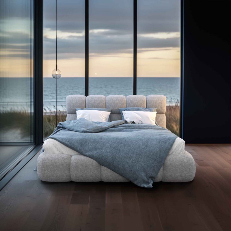 - Posiada miękką, puszystą formę, którą podkreślają głębokie wciągi na ramie oraz zagłówku, nadając łóżku Cherry niezwykłą puszystość i miękkość.
