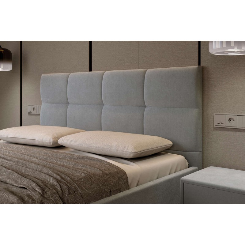 - Zagłówek o wysokości ok. 118 cm z dekoracyjnymi, wypukłymi poduszkami.