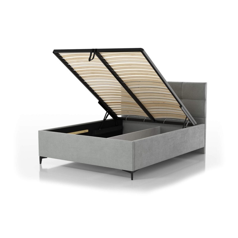 Model wyposażony jest w pojemnik na pościel, który pozwala efektywnie wykorzystać przestrzeń w sypialni. Dzięki siłownikom gazowym podnoszenie stelaża jest lekkie i wygodne.