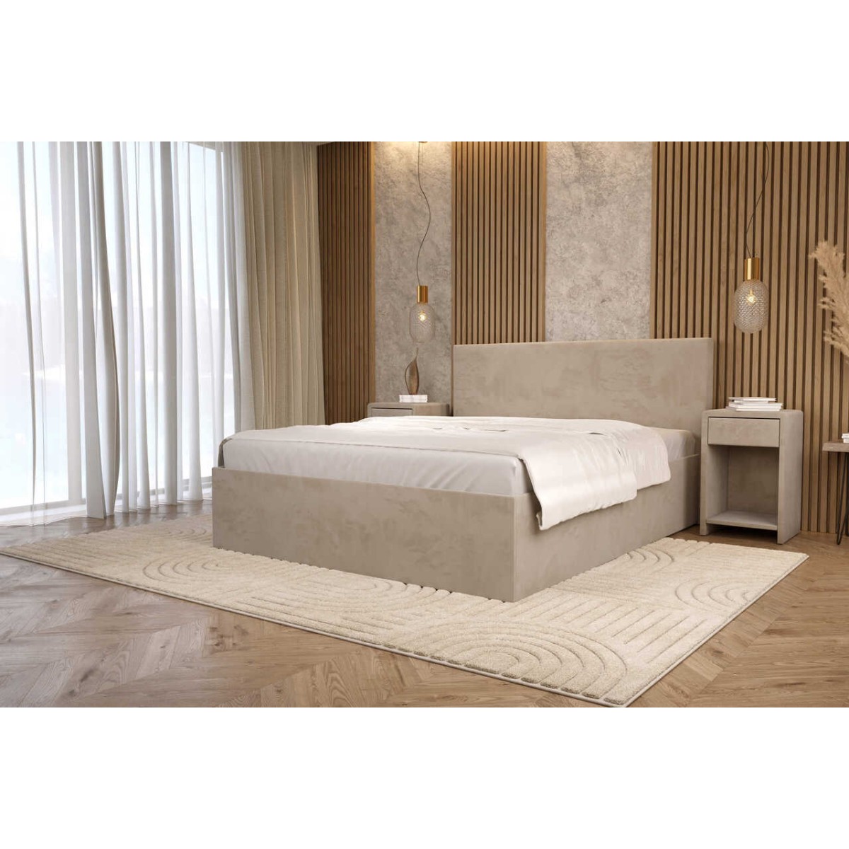 - Eleganckie, proste, tapicerowane wezgłowie nadaje sypialni przytulności i stylu.