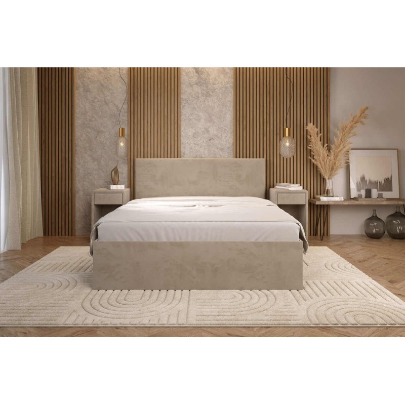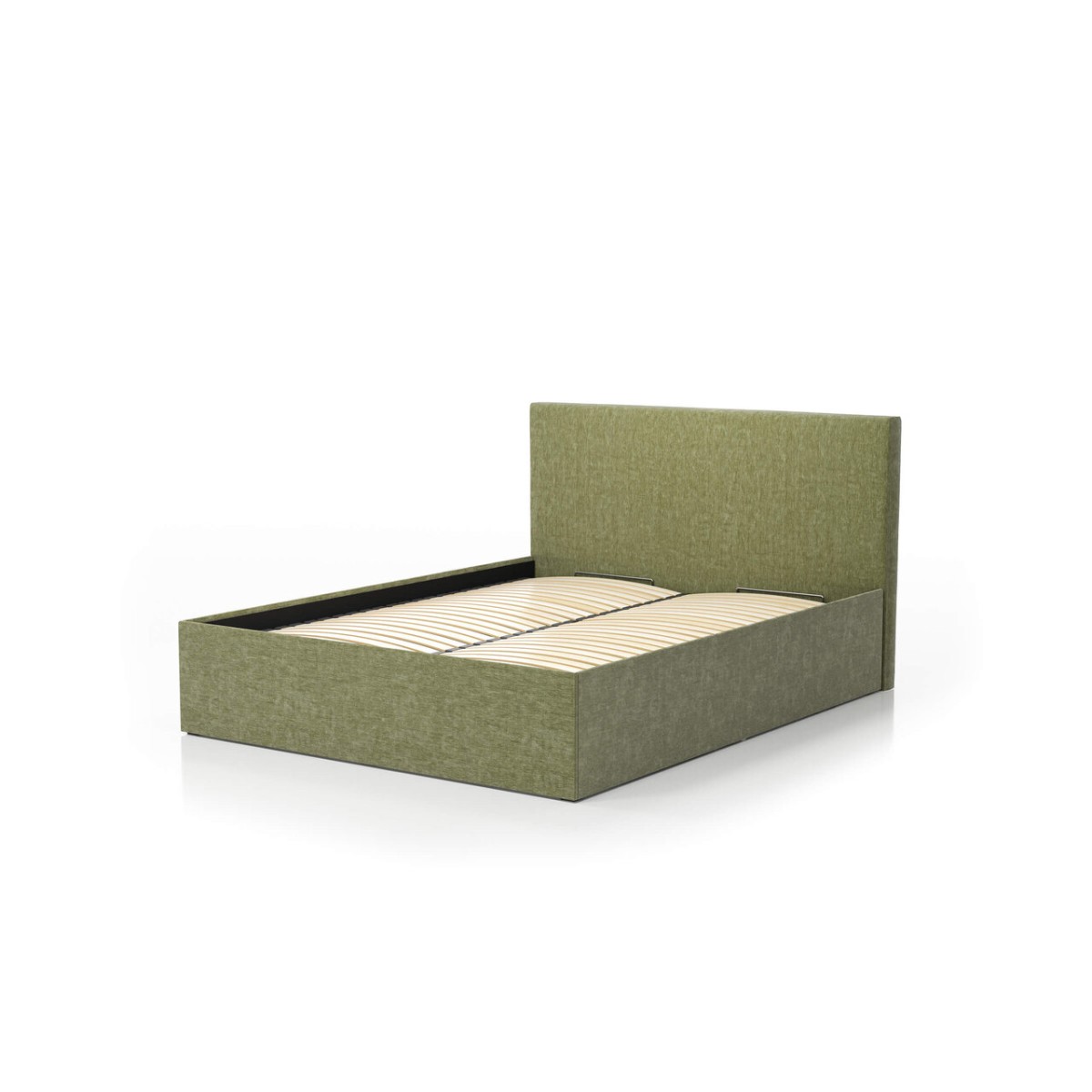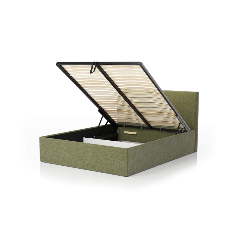 Łóżko wyposażone jest w pojemnik na pościel, który pomaga utrzymać porządek w sypialni. Dzięki podnośnikom gazowym dostęp do wnętrza jest szybki i wygodny, a przestrzeń pod materacem w pełni wykorzystana.